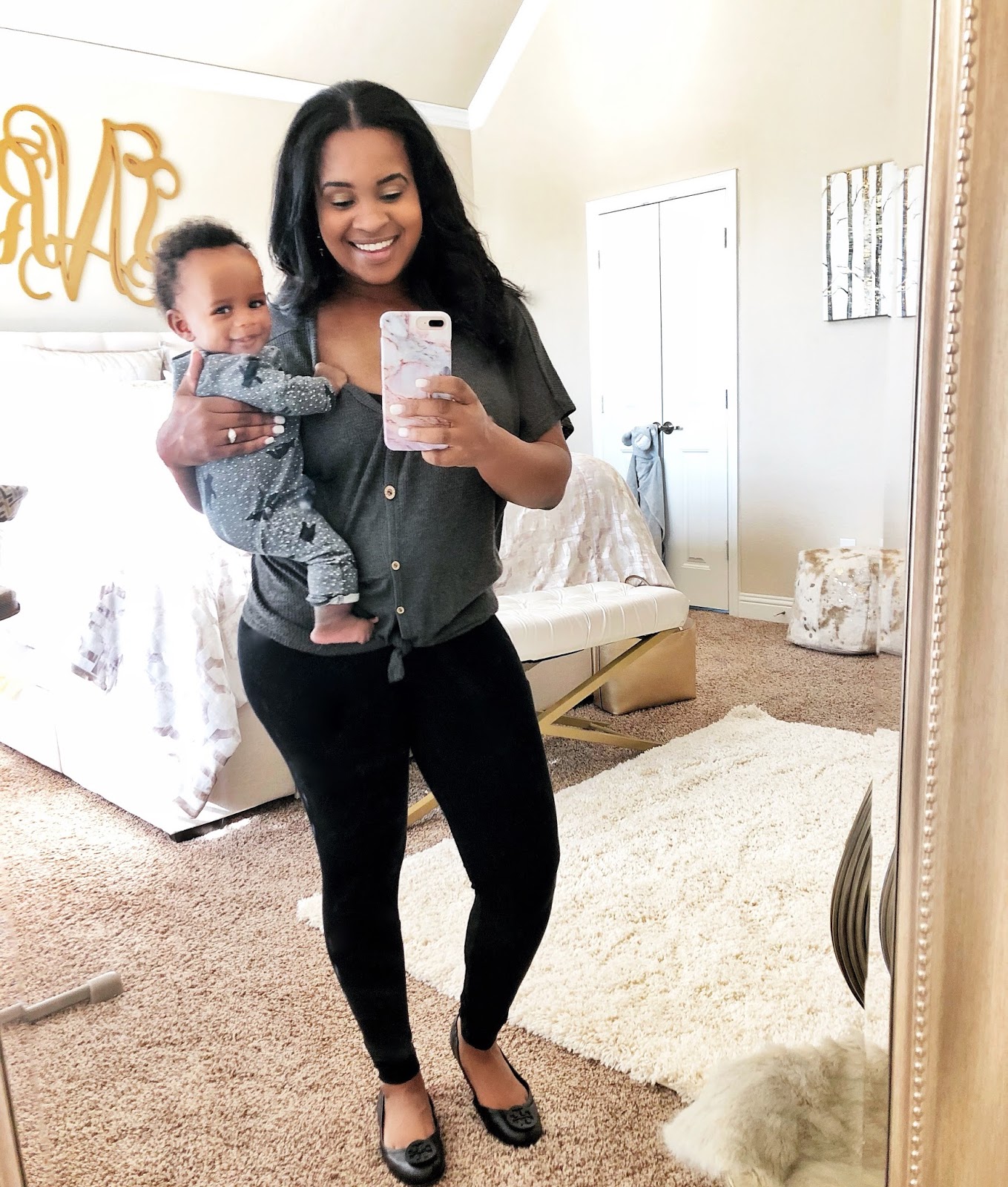 FAVORITE STYLE ITEM: My romper has been new addition to my wardrobe this month, thanks to Lauren James. Not only, was this my new style favorite, but will likely be on repeat this Spring/Summer. It is very flattering, and fun if you have any upcoming vacations or night on the town. I chose to style this by dressing it up, but would also look cute with some cute flat sandals. When I put it on I always thought to myself, is this mama finally starting to get her body back?! FINALLY!