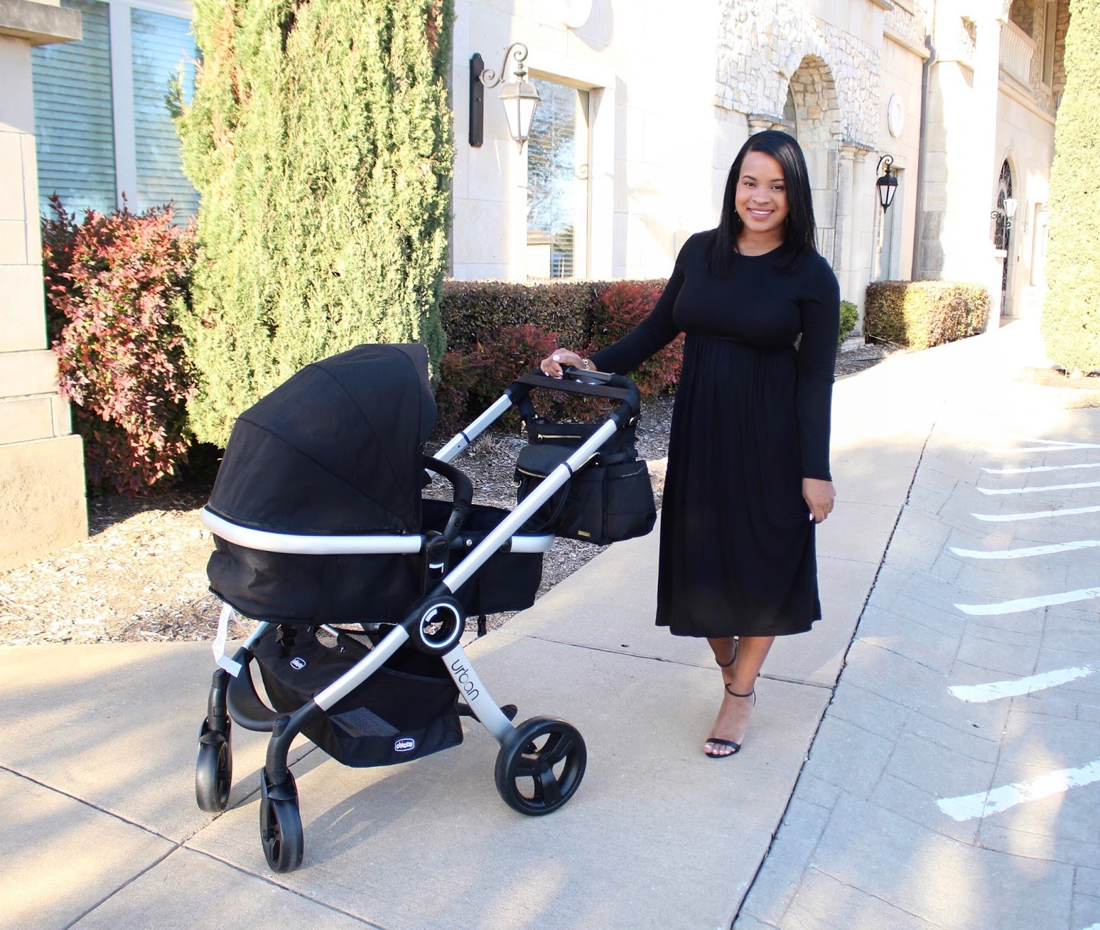 Flowy dresses– I have been gravitating to anything flowy lately. It’s comfortable and I don’t have to worry about sucking anything in. I haven’t been wearing Spanx since having the baby (letting it all hang out lol) but loose fitted dresses conceal easier slimming garments. Added bonus if its black, which is even more slimming.