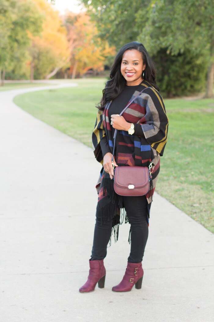 This year I decided to give it a chance, because I stumbled on this poncho, and fell in love with these colors. If you are on the fence like me with wearing a poncho there are a few things to consider to help you with styling your poncho.